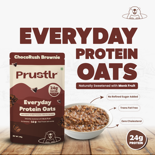 Prustlr oats are my go-to for daily protein amid a hectic schedule. Recommended by my trainers, they stand out for their modern flavors and healthy protein-oats blend.