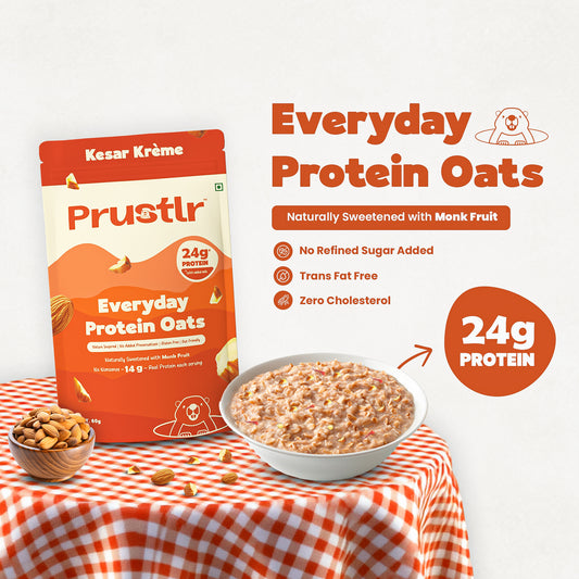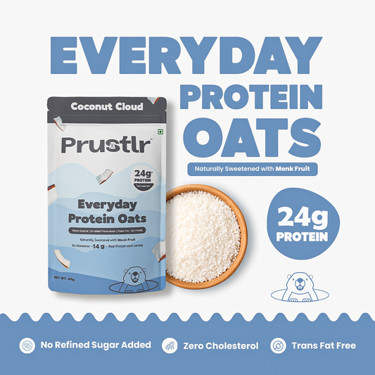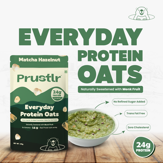 Fuel your day with Prustlr Oats packed with 24g protein per serving and ready in minutes. Just shake with milk for a quick, creamy meal or prep overnight for a grab-and-go breakfast. Perfect for busy mornings, post-gym recovery, and anyone chasing clean, tasty gains. No cooking, no hassle, just high-protein oats done right!