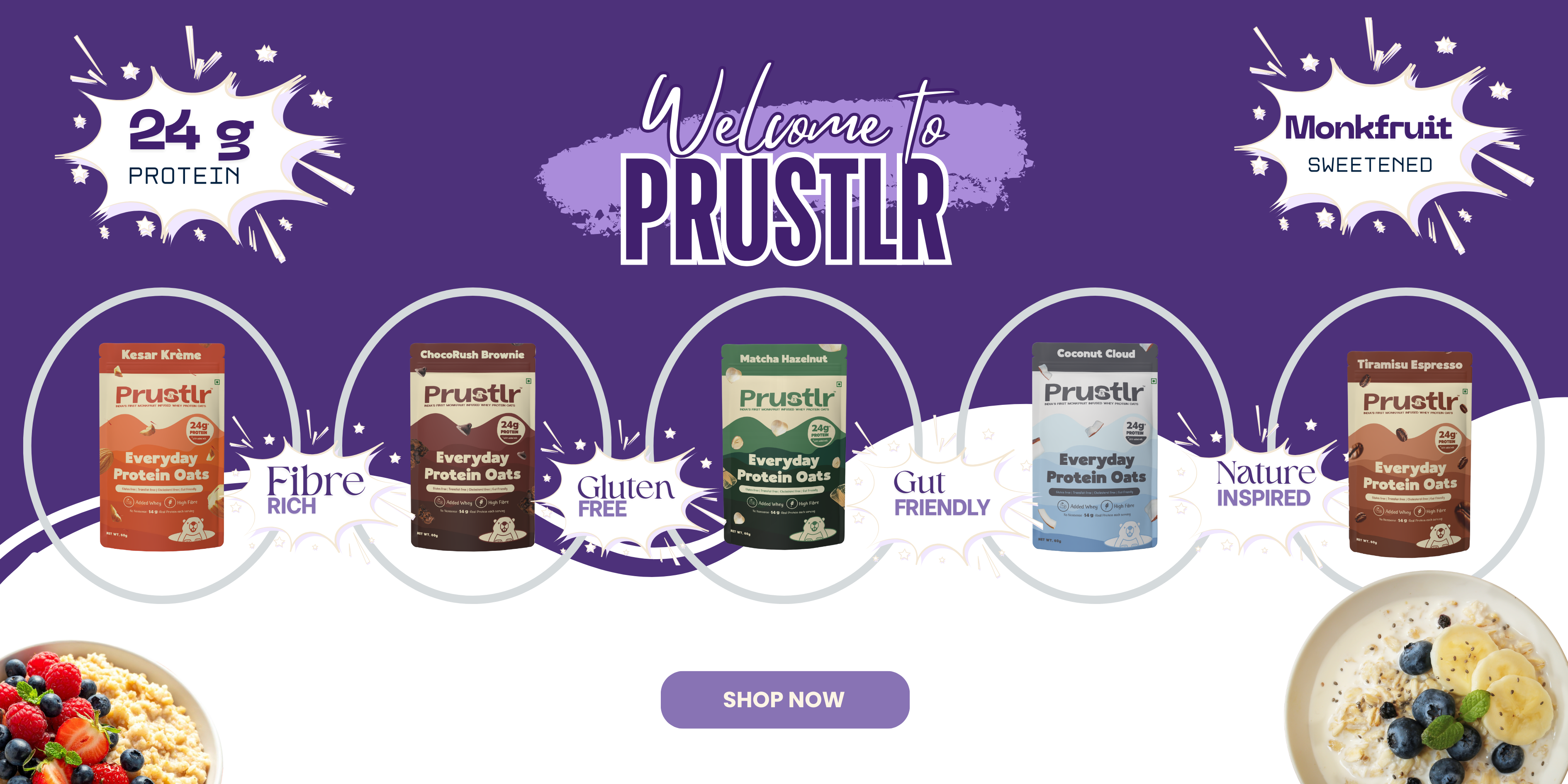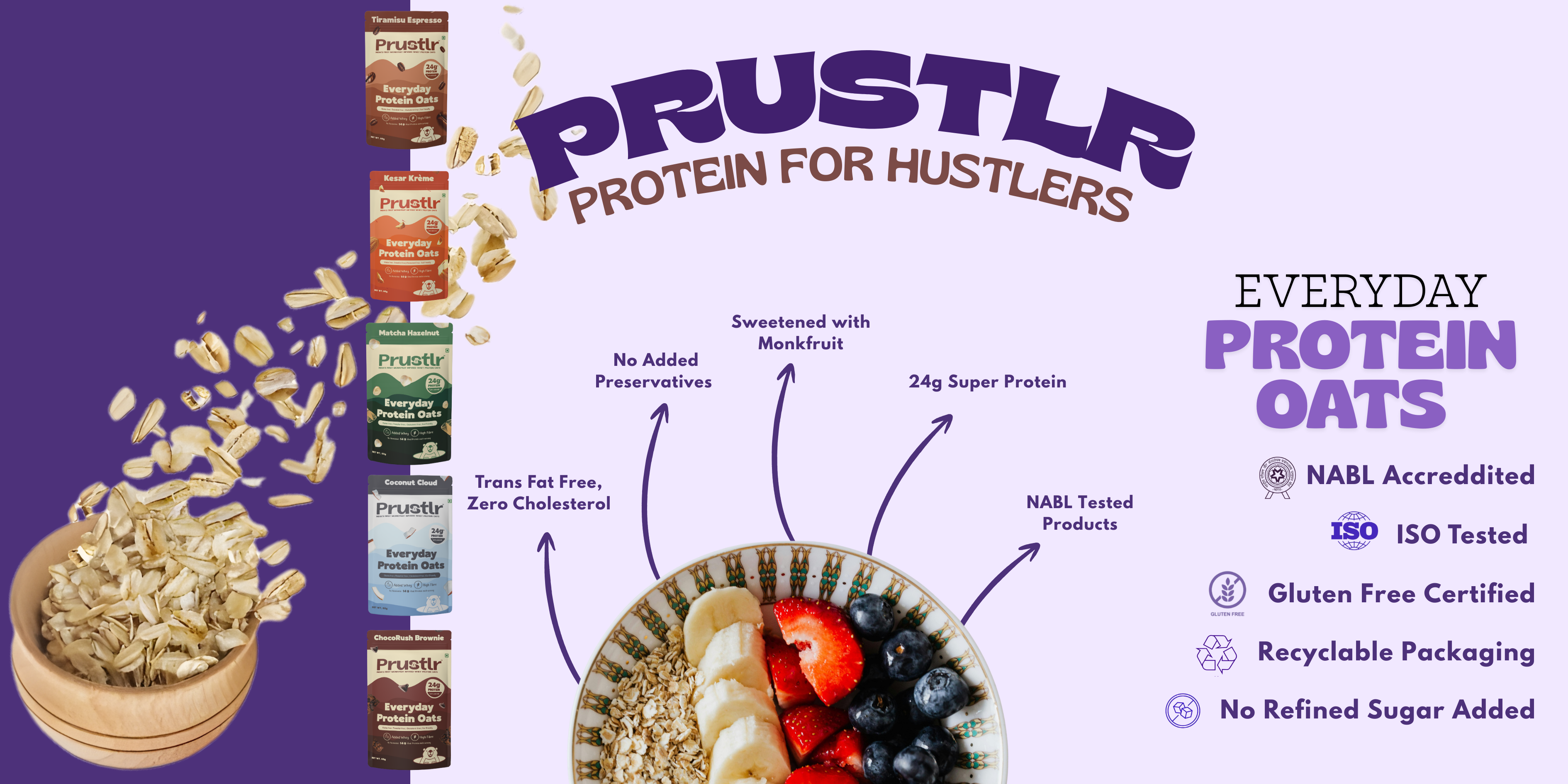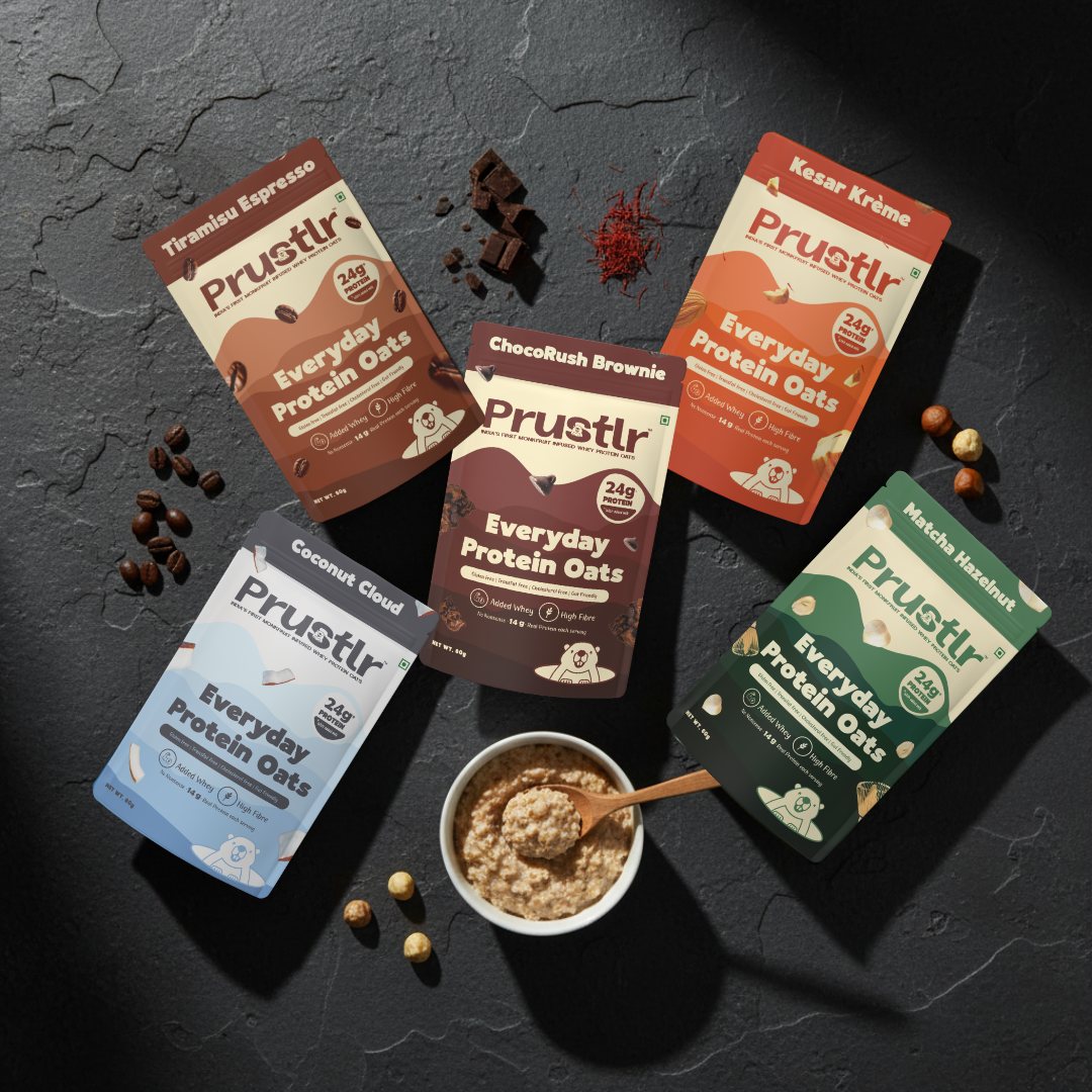 Prustlr oats are my go-to for daily protein amid a hectic schedule. Recommended by my trainers, they stand out for their modern flavors and healthy protein-oats blend.