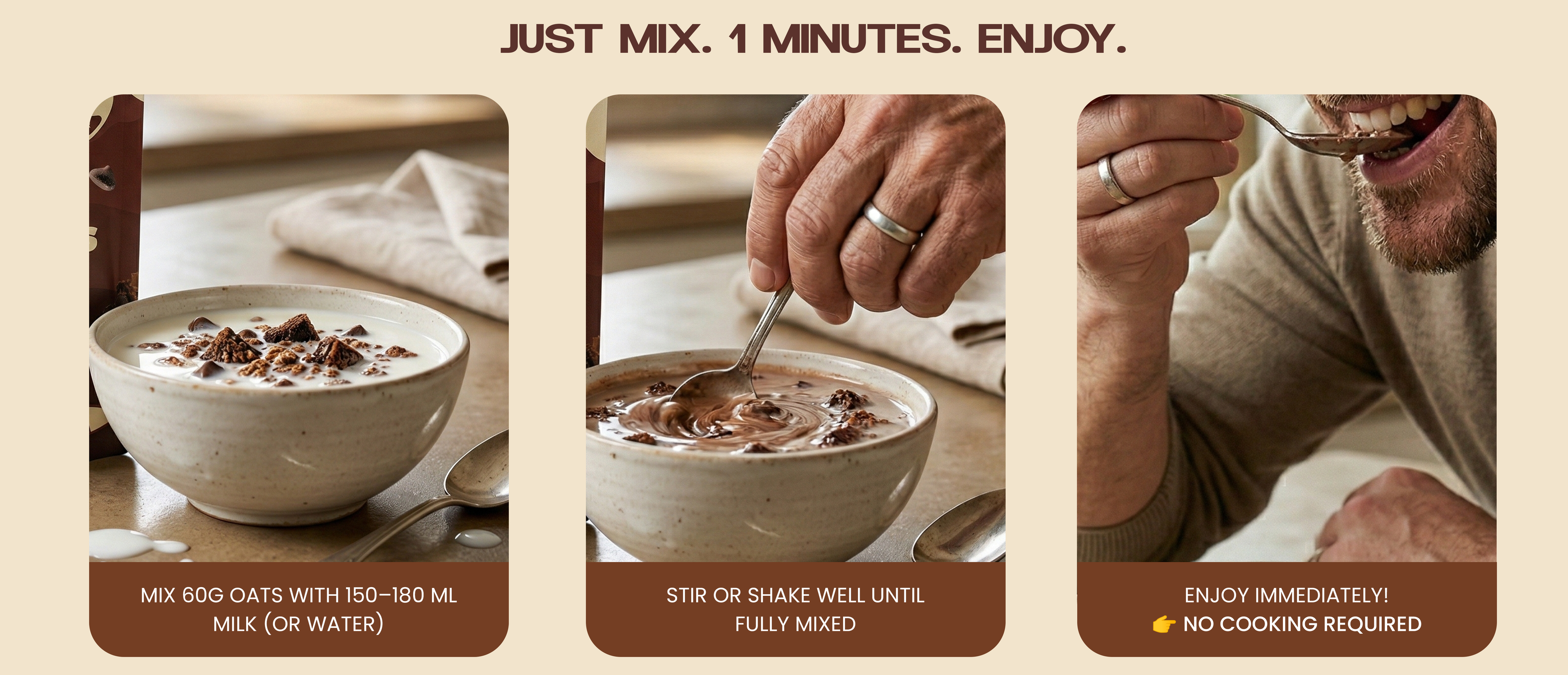 Most flavored oats taste artificial, but this one actually feels well balanced. The chocolate flavor is deep and satisfying without being too sugary. It works great as both a breakfast meal and a quick evening snack.
