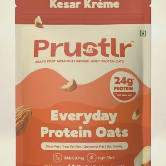 Prustlr Everyday Protein Oats are premium, ready-to-eat oats made with natural, clean-label ingredients. Unlike regular oats, ours are packed with gut-friendly nutrients, gluten-free, and zero added preservatives - all without losing any flavor. Just soak, chill, and enjoy.